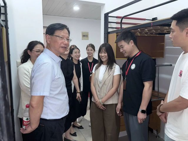为精准掌握2025级新生入学后住宿适应情况,切实将学院管理服务延伸至新生生活一线,助力新生快速融入校园环境、树立规范意识,健康学院于2025年9月14日12:00-13:00组织开展新生宿舍专项走访工作。健康学院院长徐晓峰、健康学院常务副院长刘敏、党总支书记答英娟、健康学院副院长孙连荣、党总支副书记周建光、刘卫卫、康复治疗学专业主任张佳钰、新生辅导员孙玺瑞、徐琪深入各楼新生宿舍,通过实地查看、现场交流,落实关怀举措,明确管理要求。