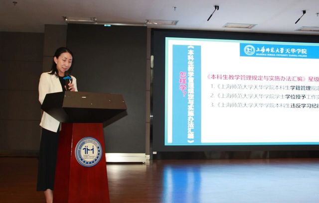 党总支副书记刘卫卫则介绍了学院“三抓三坚持”特色育人体系,为新生搭建全方位成长平台。“三抓”聚焦能力提升:抓早晚自习,大一至大二持续开展,通过四六级词汇视频学习、模拟考试等,帮助基础薄弱学生提升英语水平,且通过四级可免修早自习、通过六级免修早晚自习;抓中英文辩论训练,以9人一组开展,从思维导图到辩论赛呈现,贯穿大一至大三,锤炼表达与思辨能力,学院在“天华杯”曾获第一名佳绩;抓经典阅读,4年需完成30篇经典阅读并撰写读后感,计入德育学分。“三坚持”侧重成长保障:坚持两支辅导员队伍育人,正辅导员抓学业、就业与思想动态,副辅导员管宿舍安全、垃圾分类与防诈骗,全程陪伴新生成长;坚持德育学分制,通过参与活动加分、违规减分(如夜不归宿、带早餐进教室等),引导规范行为;坚持党员工作站进宿舍,党员工作站提供学业帮扶(如高数、英语结对辅导)、应急药箱、微波炉等便民服务,让红色力量融入日常。