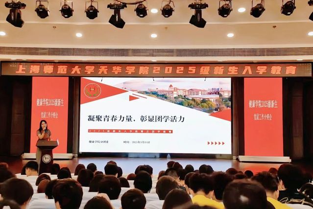 为加强新生理想信念教育,做好入党启蒙引导,推动团学活动融入,系好青年思想成长的“第一粒扣子”,健康学院于2025年9月16日上午9:00在晖华楼小剧场组织开展2025级新生入学教育之党团工作介绍会。健康学院党总支副书记周建光、分团委书记张钰源及全体新生出席会议。
