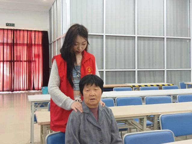 随后,社区居民们与志愿者们进行了亲切交谈,志愿者通过自身所学的专业技能对社区居民进行推拿按摩,详细询问社区居民的身体情况,以便采用针对性的治疗方法。在推拿按摩的过程中,志愿者们与社区居民交流并讲解颈椎病的基本按摩穴位和按摩方法,以便能更好的应用在日常生活中。同时,志愿者们也向老人们教授日常放松颈肩,腰背的方法,得到了老人们的一致赞许。