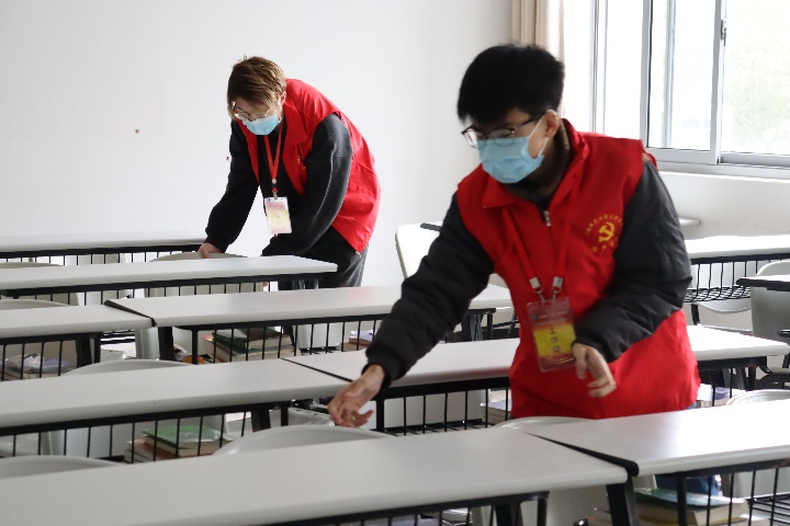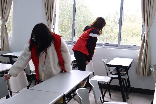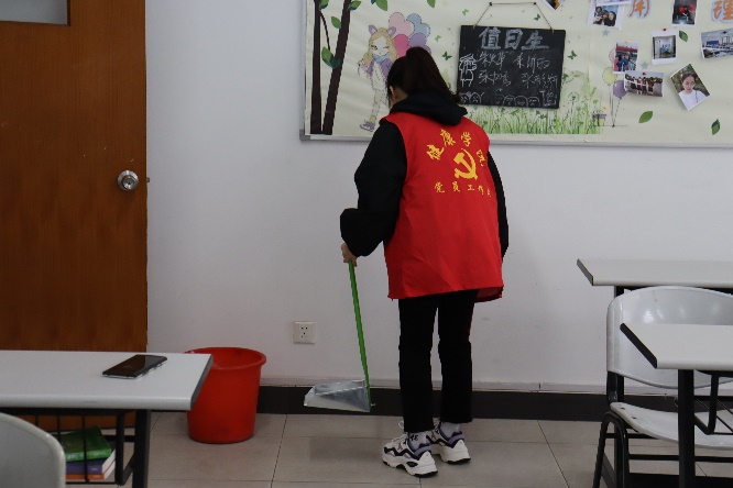 健康学院党员工作站的12名同学,主要针对月华楼三楼健康学院大一新生的早晚自习教室进行了清洁整理。