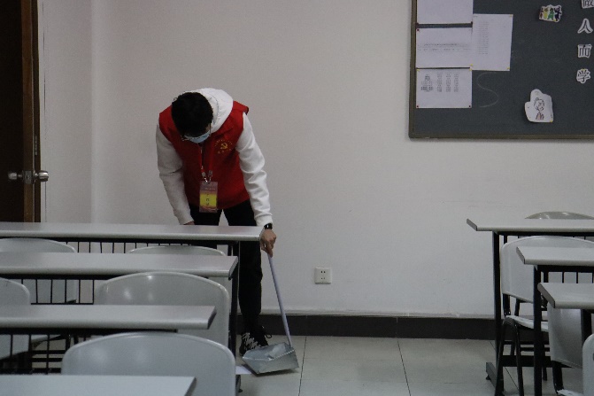 需要打扫的教室共有六间,每个教室都有两名同学负责,进行清洁整理。参加活动的所有同学都能佩戴好口罩,并将工作服和工作证穿戴的整齐有序,大家同心协力,扑下身子,高效地擦净了黑板,摆齐了桌椅,扎好了窗帘,清洁了地面。所有参与活动的同学都能以一丝不苟的工作态度、热情洋溢的工作面貌和吃苦奉献的工作精神,全力以赴的投入到“弘扬雷锋精神,争做时代新人”主题活动日中去。