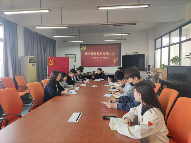 健康学院康复治疗专业党支部于2020年11月11日上午9:00顺利召开“接收预备党员支部大会”,审议5位同志由发展对象转为预备党员的相关事宜。出席本次会议的人员共13名,本支部党员7名,有表决权的党员5名。会议由康复治疗专业党支部书记孙玺瑞老师主持。