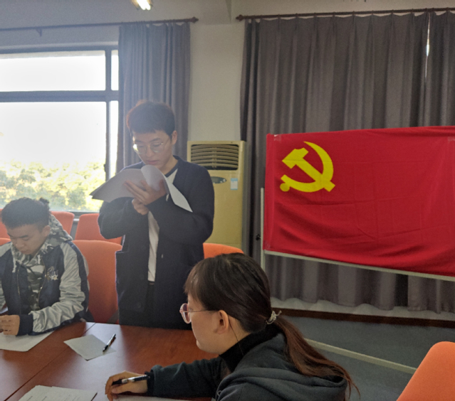 大会最后一项,由孙玺瑞老师带领全体预备党员于天华楼458向党支部大会宣读《入党誓词》,正式宣告成为一名光荣的预备党员。本次会议全程庄严肃穆,流程严谨。会议最后,周建光老师总结道:“大家现在已经进入预备期,在接下来为期一年的考察期中希望大家时刻牢记自己的身份,戒骄戒躁,不可以掉以轻心,注重党员形象,维护党组织利益,期待大家未来能够大展宏图!”