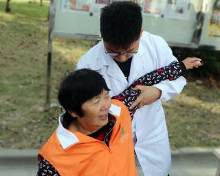 康复推拿是本次活动的一大重点项目,在了解老人们的问题之后,学生党员利用康复治疗学所学的专业手法为老人们做了一系列的治疗,同时从饮食调理、生活起居、正确的生活习惯为老人们做大量的讲解。学生党员们专业热心的服务得到了居民的一致好评,大家纷纷表示希望多开展此类活动,能给居民带来实实在在的便利服务。