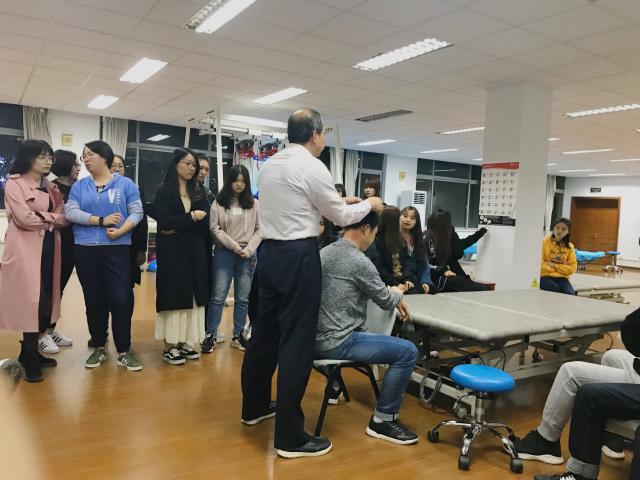 接下来由张荣健教授指导培训,通过现场进行治疗的方式向在场的同学们展示了一系列针对肩颈、腰背部的治疗方法。接受完治疗的老师及学生身上的不适感瞬间改善,纷纷称赞张教授康复治疗手法的有效性。在学习过程中,积极分子们认真聆听,互相配合,认真练习推拿手法和放松肌肉的技巧。本次培训活动中张荣健教授通过治疗将理论与实践相结合,使在场的积极分子们的推拿技术有了进一步的改进与提高,对之后开展服务有了更大的信心。