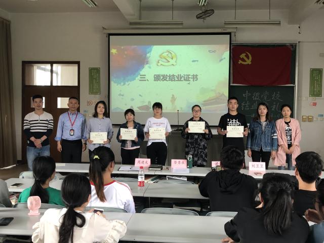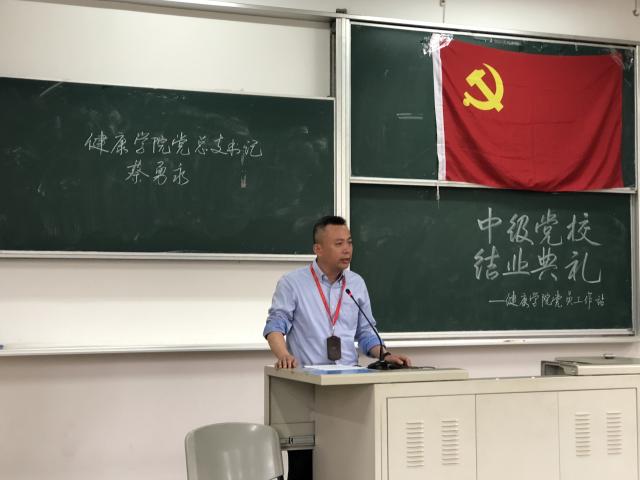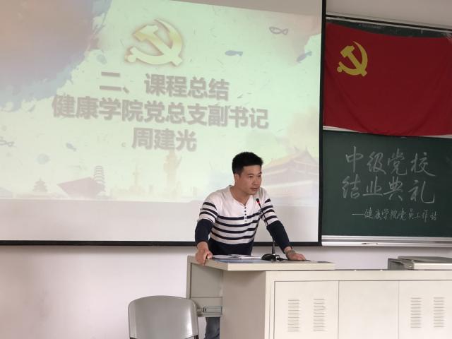 2018年5月2日下午16点20分,健康学院中级党校结业典礼在日阶303顺利开展。健康学院党总支书记蔡勇永老师、党总支副书记周建光老师、党总支副书记黄璐老师、应用心理学专业党支部副书记刘卫卫老师及全体中党学员出席本次典礼。