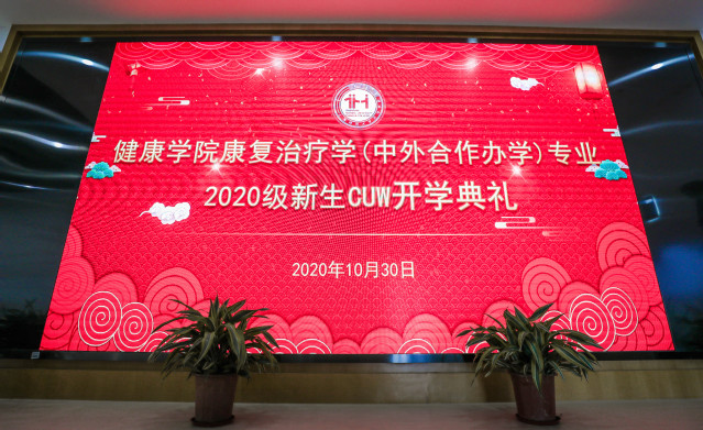 为更好地帮助健康学院20级康复治疗学(中外合作办学)专业(以下简称中美康复)新生们了解与合作院校美国威斯康星协和大学的项目细节及相关事宜,我院于2020年10月30上午8:30在图书馆四楼隆重举行中美校方见面会兼开学典礼。