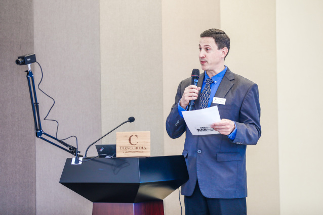 大会第四项,播放由Dr.Pat Ferry、Dr.David Birner和Dr.Steven Cope所录制的视频讲话和威斯康星协和大学校园环境及组成。