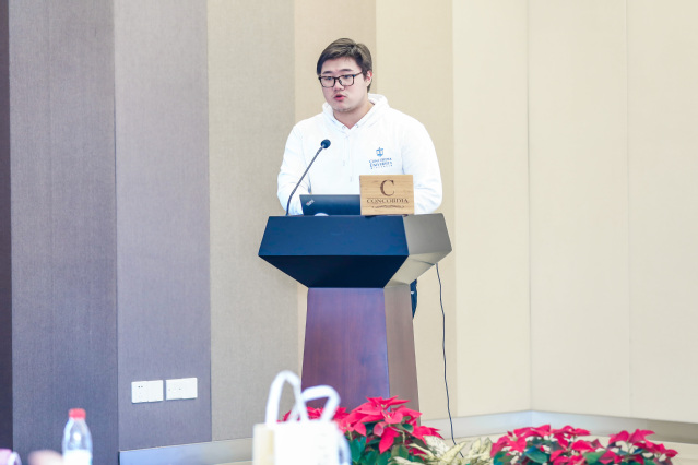 大会第六项,美方毕业生代表17届中美康复1班的韩少珺同学通过视频的方式给大家带来他在威斯康星协和大学的精彩生活。在视频中,韩少珺学长介绍了美国威斯康星协和大学的人文风情,描述了他在协和大学丰富且精彩的日常生活,同时希望各位新生能够努力学习,尽可能的来到协和大学学习,丰富自己的人生阅历,将其变成人生的瑰宝。