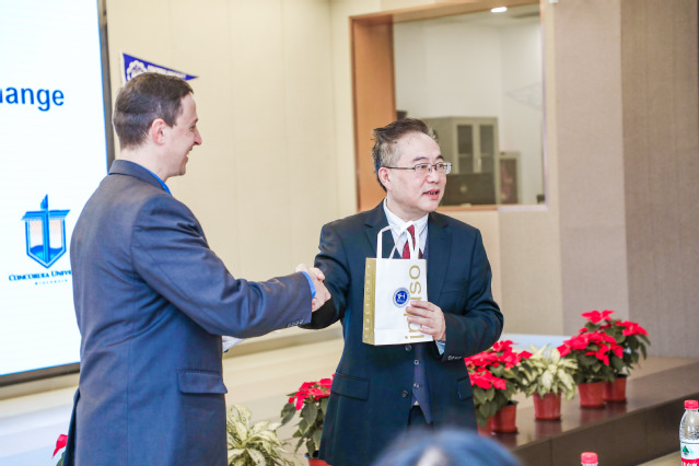 大会第八项,健康学院院长祝亚平向美方老师赠送礼物。礼物虽小,但情谊珍重。希望能通过一份小小的礼物,让我校健康学院与威斯康星协和大学之间的友谊更加深厚,沟通更加紧密。
