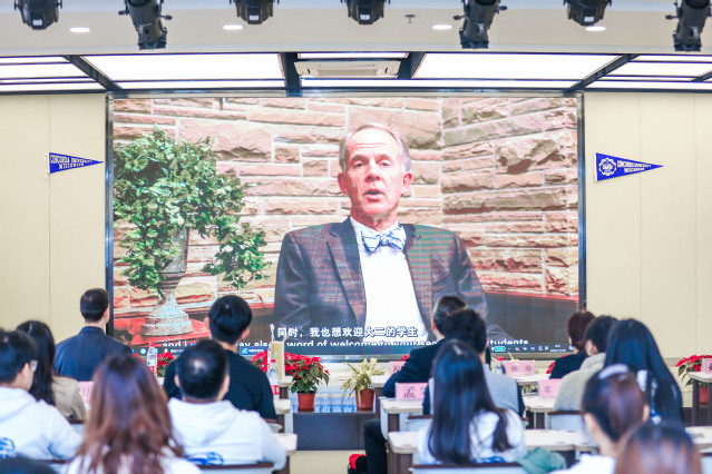 大会第二项,Dr.David Birner通过线上视频发言。Dr. David Birner对20级共95名中美康复专业新生的到来表示热烈的欢迎。他表示威斯康星协和大学的学生十分愿意与我校学生结交朋友,希望在座的各位能够一同前来与威斯康星协和大学的学生们共同学习、共同生活。