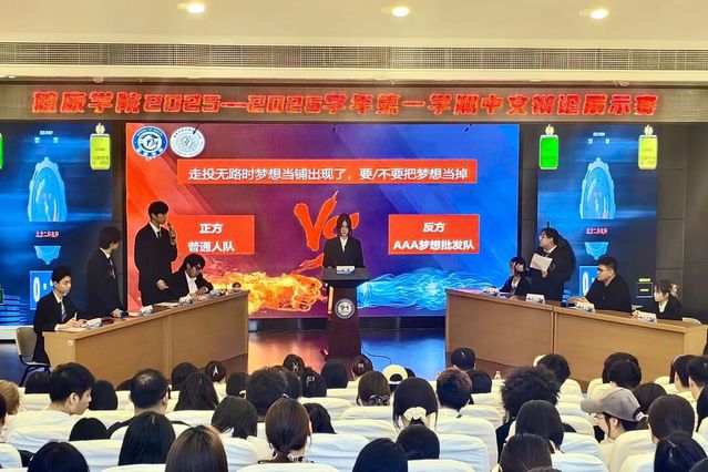 2025年10月10日下午14:00,晖华楼小剧场座无虚席,面向25级新生,健康学院思毅辩论协会举办了2025-2026学年第一学期中文辩论训练展示赛。作为学院“三抓三坚持”特色育人工作的重要环节,本次活动面向2025级全体新生,呈现了一场别开生面的辩论演示,带领在场师生共同探讨梦想与现实的深刻命题。