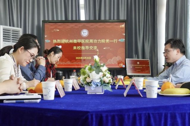 3月25日,杭州微甲医院周功力院长率李锋副院长,院长助理杨啸寒,陈恩洁一行莅临我校健康学院调研交流。健康学院院长徐晓峰,常务副院长刘敏,党总支书记答英娟及教师代表共同参与此次交流活动。