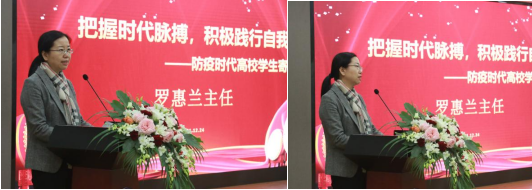 随后,上海嘉定工业区管理委员会副主任罗惠兰女士发表主题演讲。罗主任引用了习近平总书记的指示“实施中国健康战略是向实现中华复兴中国梦的基石,是国家战略的高度,这是对世界的顺应,也是对内在规律的把握”,而预防就是在健康战略中最经济最有效的方案。罗主任大力赞扬了健康学校对于疫情防控事业做出的贡献,并且肯定了健康学院在疫苗接种率以及在疫情防控上作出的贡献。除此之外,罗主任还对健康学院的社区志愿者工作表示肯定,天华学院的学生走出校园,走进社区,参加了许多的志愿服务,不仅得到了很多社区的赞扬和肯定,也发挥了自身应有的作用。最后,罗主任希望大家在未来能坚持救死扶伤,不畏艰险,甘于奉献的精神,为医疗事业贡献更多的力量。