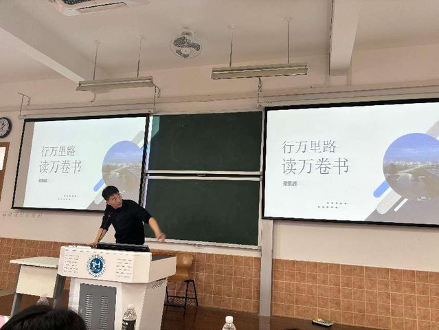 接着,2021级BSRS项目优秀学生代表梁凯越分享了自己的留学经历。他以“行万里路,读万卷书”为主题,从留学生活的点滴、学业项目的收获、丰富多彩的课外活动以及个人未来规划等角度,生动呈现了在威斯康星协和大学的充实时光以及BSRS项目带来的宝贵机遇,引发了学弟学妹们对留学的强烈向往。