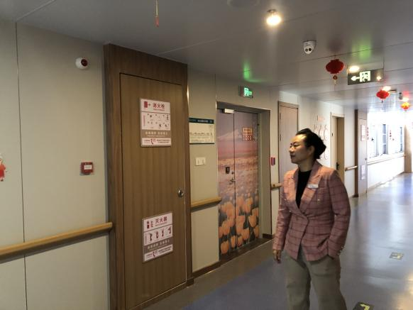 次日再访济华,同学们的目光更多地投向了日常运营与服务细节。清晨,护理人员正娴熟地为长者测量血压、血糖,并辅以温和的交流。活动室里,八段锦的音乐悠扬,长者们热情参与,氛围温馨。在失能及认知障碍照护专区,回字形走廊、房门观察窗、规避“4”字号的设计,以及用于认知训练的非药物干预道具,处处彰显着专业照护中对长者安全、尊严与心理需求的极致呵护。