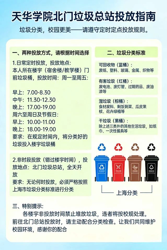 垃圾分类,校园更美 | 请遵守定时定点投放规则