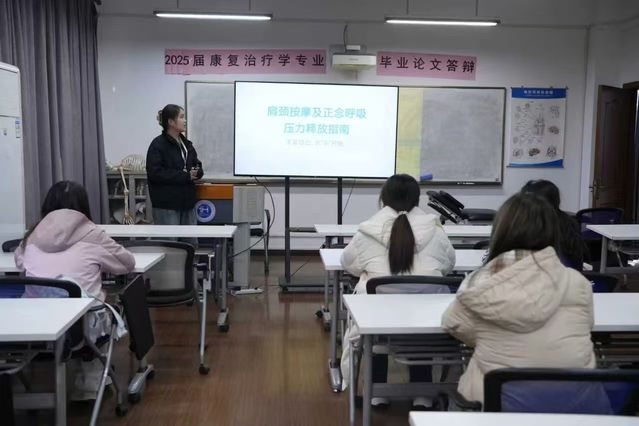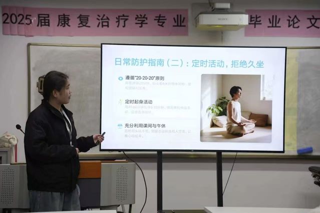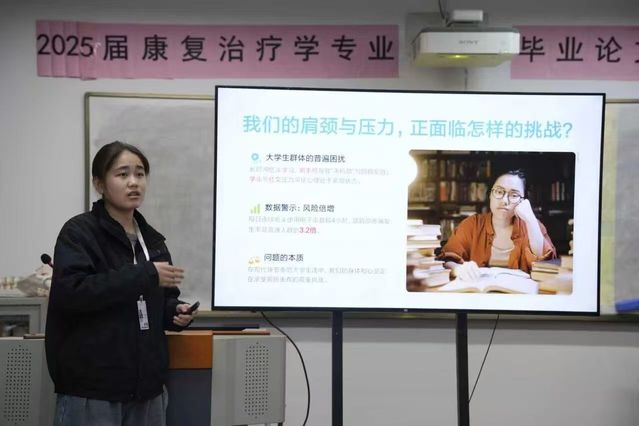 活动现场,程美娟同学首先结合大学生校园生活实际,聚焦学业压力、人际交往压力等常见心理压力源,以及长期低头学习、使用电子设备引发的肩颈不适成因展开专业讲解,让同学们充分认识到身心调节与压力释放的重要性,树立科学的健康防护理念。