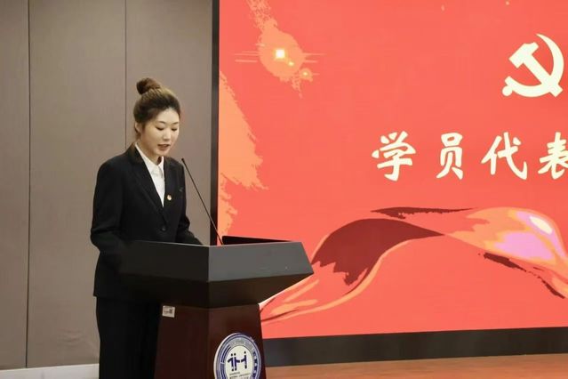 学员代表2024级康复治疗学(中外合作办学)3班张研同学在会上发言。她结合自身在初级党校学习中的收获与成长,分享了思想认识上的深化与升华,并表达了对中级党校学习的憧憬与决心。她代表全体学员郑重承诺,将倍加珍惜此次学习机会,沉下心来钻研理论,积极投身实践锻炼,自觉锤炼党性修养,以实际行动接受党组织的培养和考验,决不辜负组织的期望。