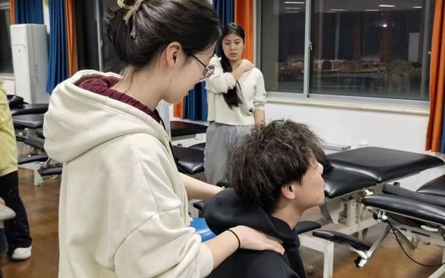 理论讲解后,现场迅速进入沉浸式实操演练。学员们两两结对,反复练习穴位定位、指针手法与力度把控。张教授与李教授深入各小组进行一对一精准指导:针对穴位定位偏差,结合解剖图谱细化技巧;针对手法不规范或力度不足,现场纠正发力方式,引导学员亲身感受“酸、麻、胀”的“得气”感;并耐心讲解颈部“小幅度、慢节奏”的活动配合技巧,确保每位学员都能掌握操作要义。学员们反馈,通过沉浸式练习,不仅熟练掌握了落枕康复的指针操作,更深刻理解了中医理论与现代康复技术的融合逻辑,专业能力得到显著提升。