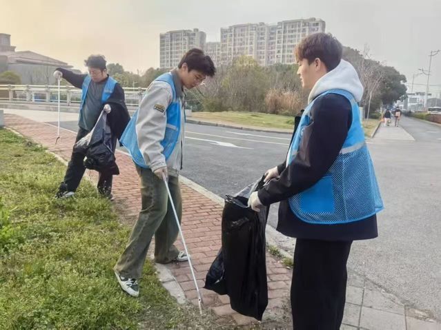 志愿学子们手持扫帚、垃圾夹、环保袋等工具,俯身拾捡、通力协作,汗水浸湿衣衫却依旧热情不减。健康学子结合专业特色,在清扫的同时向过往市民普及环保与健康相融的生活理念,讲解爱护环境对身心健康的重要意义;人工智能学子以严谨细致的态度做好每一处清理,用行动诠释责任与担当。两院学子相互配合、彼此支持,成为春日校园周边一道靓丽的志愿风景线,其务实的行动不仅赢得过往市民的驻足点赞,更带动不少路人主动加入清扫队伍,让环保正能量在你我之间持续传递、不断升温。