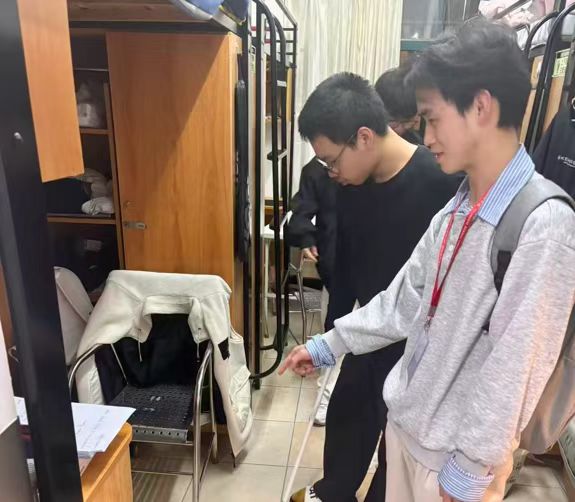 同学们完成宿舍整理后,班助理团队逐间深入宿舍开展全面检查。检查过程中,重点对地面与台盆卫生、阳台杂物堆放情况以及用电安全隐患进行逐项排查,对插线板乱拉乱接、大功率违规电器等问题进行重点关注。针对发现的不足,班助理现场反馈并指导同学们及时整改,同时结合节前离校注意事项开展安全教育,引导同学们增强安全防范意识,将规范意识落实到日常生活之中。