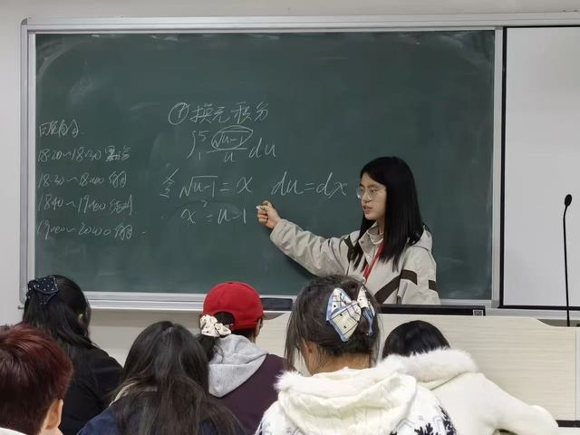 聚焦学业难点,于解惑中彰显先进。学业帮扶,首在精准。面对《高等数学》中“换元积分法”等令新生普遍感到棘手的难点,学生骨干们主动担当“学业辅导员”。他们不满足于简单告知答案,而是致力于厘清思路、疏通逻辑。通过将抽象的数学语言转化为生动的步骤推演,结合典型例题进行反复拆解,帮助同学们逐步掌握解题的“钥匙”而非仅仅记住“答案”。这一过程,不仅是知识的传递,更是科学思维方法与良好学习习惯的引导,为同学们筑牢数理根基提供了切实支持。